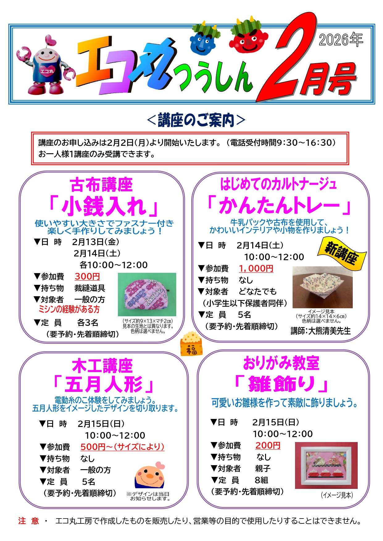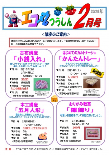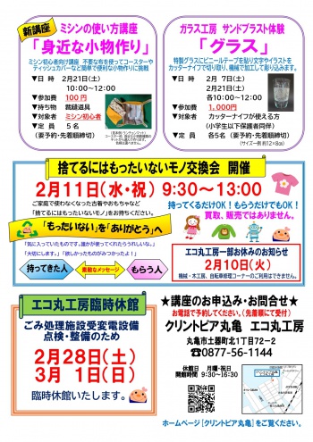 クリントピア丸亀「エコ丸つうしん2月号」リサイクル講座開催!