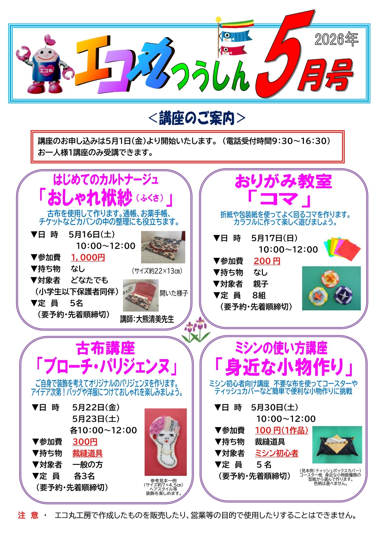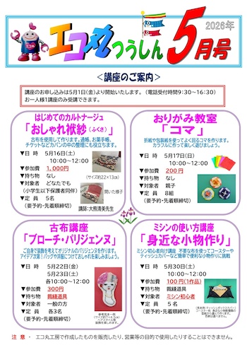 クリントピア丸亀「エコ丸つうしん5月号」リサイクル講座開催!